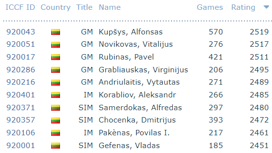 Nauji reitingai 2023/2 – galioja nuo 2023 m. balandžio 1 d. iki 2023 m. birželio 30 d. (imtinai). Lietuvos šachmatininkų, turinčių aukščiausią reitingą, dešimtukas: