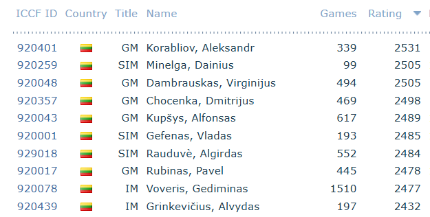 Nauji reitingai 2026/2 – galioja nuo 2026 m. balandžio 1 d. iki 2026 m. birželio 30 d. (imtinai). Lietuvos šachmatininkų, turinčių aukščiausią reitingą, dešimtukas: